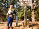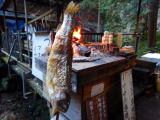 滝から先には人が居なくなり車道と別れる所に10月14日に熊が目撃されたことの掲示があった。昨年の秋から熊を警戒して房総の丘ばかり歩いていたので久々に熊鈴を付けて山道に入る。9::28に再び車道に出て山頂を巻くように車道を歩き高山不動尊に参拝すると登山者が多くなる。山奥に立派な伽藍が出来ていることに驚きながら、この山は西武鉄道西吾野駅から登るのが一般的で、お寺の駐車場に車を停めて登るものも多いようだと知る。関八州見晴台に向けて登る人々に続いて歩き山頂には10:31に到着した。丹沢や富士山も見えていたが日光や筑波方面は霞んで見えず赤城山が霞んで見えている程度だった。看板には房総の鋸山も見えると書いてあったが霞んでおり関八州の一部しか確認できなかった。15分ほどで下山を始め花立松峠からは往路を戻る。滝を過ぎると焼き団子の幟が出ている。朝から何も食べていないので団子を食べようかと思ったが600円のニジマスの塩焼きを購入して歩きながら食べ、駐車場には12:07に帰り着いた。