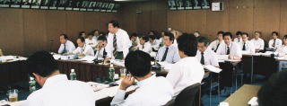 説明の職員は40名以上が室内に集まり真剣である。高橋委員長に承認を頂き、会場の写真撮影をさせていただいた。 |
