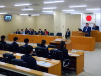 | 「合同生徒会」は市内公立中学校12校の生徒会長が各学校の生徒会活動についての情報交換を行ったり共通の課題や社会的諸問題に着目して協議したりする会議で、豊かな創造力を育てるとともに次世代のリーダーを育成し若者のまちづくりへの参画を推進するため令和5年3月に発足し、今回が4期目となる。市議会としては主権者教育の一環として議会改革特別委員会が中心となり共同事業として昨年度から開始したものである。議場を見学してもらい生徒からの質問を議員が答え議員をアドバイザーに加えたテーブルディスカッションを行い教育長を交えた全体会でまとめるという一連の流れを3時間で行うという内容の深いもので、今回は富津市の平野議長を含む3人の市議も傍聴に来ていた。質問は事前通告で議員の答弁は自ら調べて答えているので若干の間違えも気づいてしまったが、災害対策に対する答弁で助けられる側から助ける側に回るようにしてくださいという鶴岡議員の答弁は流石だと思った。最後に議場で記念写真を撮影して終了となるので、福祉会館に移動して10時から開催されている福祉まつりの見学に行きついでに昼食を購入する。 |