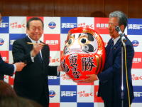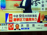 | 娘を車内に待たせて投票を済ませて妻に続いて公民館を出ると私が調査対象の順番に当たったということでタブレットを使い投票先だけでなくこの時期の選挙についての感想や注目した争点、消費税についての意見、候補者の情報をどの媒体から得たかなどの項目に応える。タブレットに選択肢がないことが多いのは私が特殊なんだろうかと思いながら回答を終え、家族で昼食を摂ってから帰宅する。午後からHPを更新して夕方に農協会議室に設けられた開票会場に移動する。多くの支持者だけでなく選挙区内の首長・県議・市議、臼井参議院議員も集まり午後8時の投票終了時刻を待ちNHKの開票速報が当選確実を伝える時を待つ。先に隣接の千葉3区で松野元官房長官に当確が出た時や宮城県で中道幹事長の安住淳氏を森下千里氏が破ったことが解ると会場が湧く。そしてテレビを10分も見守る頃に当選確実のテロップが出たので万歳三唱を行い、報道関係者による取材やダルマの目入れなどを見届けた。 |