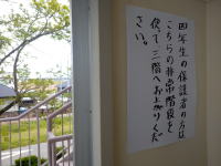 18日は午前中に車の掃除や旅行荷物の整理を行い、昼食後に妻の車で岩根小学校に行き授業参観やPTA総会に出席する。小学校では階段室の天井モルタル撤去工事が行われているため、娘のクラスに行くためには屋外の非常階段を利用せねば成らなくなっていた。 |