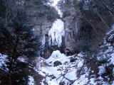 早朝5:10に起床し出発。アクアラインや首都高を順調に進み、危惧していた中央道でも渋滞が起きていないことを確認し談合坂SAで朝食を取り笹子トンネルを抜ける。上り線の橋梁が工事現場に成っていることを脇に見て勝沼ICで降り、大滝不動尊奥宮まで山道を進む。除雪されているが雪も残る細い道に緊張しつつ標高910mの駐車場に到着。着替えて軽アイゼンと簡易滑り止めを持って7:56より歩き始めた。