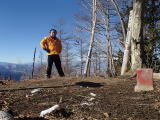 再び山頂に向かっていく中で唯一の登山者と擦れ違い、林道を渡って少し登ったところで大富士見台と名付けられた山頂に9:29に到着する。尾根続きに標高の高い宮台山が有るので山頂らしくないが富士山の探訪は確かに良い。三脚で写真を撮り、少し下山して西側の展望の良い場所で八ヶ岳や南アルプスを堪能して下山を始める。