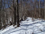 のんびりと歩いたつもりであるが標高差も少ないので時間はまだ早い。予定通り、この日の第2峰の源次郎岳に向かうため、登山口の嵯峨塩鉱泉に向かって走り始めた。 |
