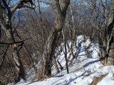 急坂もない道を坦々と登り、時々青空も見せていた天候も山頂が近づくほど小雪が舞う冬山に成り、稜線に出ると風も強く手袋とヘアバンドを装着する。しかしそのような天候の中で多くの登山者が山頂を目指していたし、下山の方々とも多くすれ違う。昨年夏の権現岳以降は数人しか合わない山を登り続けていたので人数の多さに驚かされる。