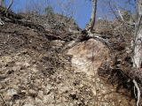 帰路は山火事で木立がなく日当たりの良い尾根を一つ先の分岐点まで進み、大滝不動尊に戻り参拝して車に帰ったのは10:31であった。