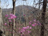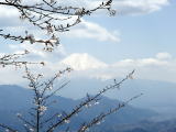 百蔵山を見下ろしながら下りはじめ、見上げるようになった最低鞍部の宮沢分岐で小休止を取り、一気に登り返して百蔵山[1,003m]には12:08に到着する。お昼時のためか家族連れを含む多くの人が桜の元でくつろいでいた。今年は桜の開花が記録的に早かったので、満開の桜を期待していたのであるが山の季節は特に早まることもなく、まだ2分咲きであった。若干ガッカリしながら富士山を正面に見える場所に腰を落ち着け、コンビニで購求してきたおにぎりを食べて一休みを取る。