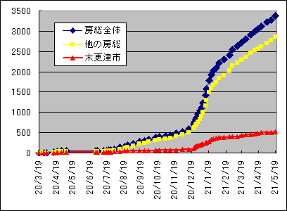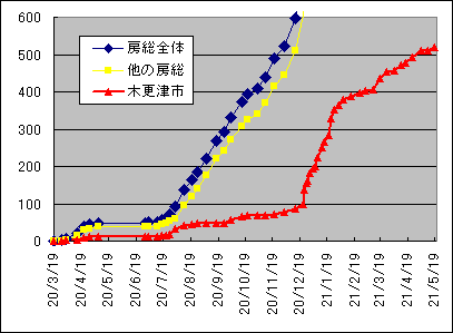 | N0,2とNo,3のカテゴリーが優先して接種する「高齢者」に属しており、市は国に対して7月中に接種完了すると報告している。 市の接種計画に示す対象数は推計値も含まれており、摂取率の目標としては全員に義務接種を行う制度ではなく固辞するものも居ると思われることから100%を目指す高齢者施設従事者を除き、集団免疫を持つと言われる70%で考えている。 そのため39,816×0.7+2,041=29,912人を7月末までに2回接種する事が目標となり、その内訳は集団接種の13,200回に対して個別接種は46,750回(合計59,950回)実施されるものと見込んでいる。個別接種の割合が78.0%に達する計画なので55の医療機関の健闘が期待されるところであり、市民にも集団接種の予約が出来ないと嘆くより、近くの掛かり付け医に相談することを私は推奨している次第である。 なお、集団接種については予約方法が変わり、次回は6月4日から7日までの4日分、480人の枠を5月25日の9時から受け付けることになった。これは枠をまとめることで予約を取りやすいようにするためと聴いているが、今から5日間で個別接種が簡単で早いという気配が浸透することで予約殺到が無くなることを願っている。 また、医療機関への負担を抑えるため、個別接種の予約状況については随時把握することにはしていないようである。接種の開始も今日から始まっている所があるようにも聴こえてくるが情報が不足しており、全体像は見えてこない。 55箇所を把握する市の担当も大変なことだと思うが、医療機関の余力がどの程度有るのかは市民の関心が高い所だと思うので、接種の実績と合わせせめて週単位では状況報告して欲しいものだと考えている。 集団接種については木更津市が15日(土)に開始したことに続き、16日には君津市で、18日には袖ケ浦市で開始され、富津市でも来月6日に開始される予定と伺っている。全国的に接種が始まったが木更津市と同様に市民のごく一部に接種されただけなので感染を抑制する効果を見せるには至っていない。 房総半島でも11日から昨日までの8日間で103人の新規感染者が明らかになった。最近は一日当たりの増加数が一桁になっていたが、今回は12.88人と再び二桁に戻ってしまった。 |