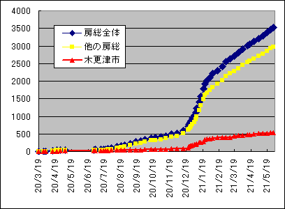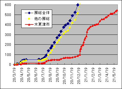 | 木更津市によって2回目の接種を終えている者は5日前の57人から529人に増加し、対象人口の0.45%に増えた。県による医療機関従事者の接種を除いた接種回数が6,136回なので集団接種はその15.7%となり、医療機関が84.3%を担ってくれている。 また、5日間に3,022回の増加なので、一日当たり約6百回の接種が行われた事になる。11万8千人に2回接種すると23万6千回の接種が必要なので、今のペースでは393日必要となる。年内に終わらせるので有れば、この倍近いペースが必要である。そのためには何を解決する必要があるのか、現場の声に耳を傾ける事が重要であろう。 房総半島の感染状況は26日からの5日間で59人の新規感染者で、一日当たりでは11.80人、人口10万人当たり一週間感染者数に換算すると7.39人となりステージUの状況が続いている。 |