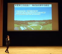 式典後には矢那で「耕す」を始めたミュージシャンの小林武史さんの講演に引き続き宮崎治夫さんとのディスカッションを聴く。