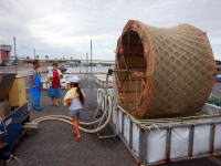 24日は吾妻地区で新木更津市漁協の組合員が海苔の種付け作業を始めたと前日の内に聞いていたので、娘の勉強も兼ねて朝8時に見学に行く。胞子が出ている牡蛎殻や回転する網などを見て、海苔を造る作業の大変さを一部でも理解して木更津市の子供に育っていただきたいと願う。