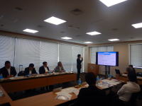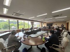 駅の改札を出たところに大津町の議会事務局職員が迎えに来ていただいており町役場の議場まで案内される。熊本地震を機に建て直された奇麗な庁舎で坂本議長の歓迎の挨拶を受け、大村建設経済常任委員会委員長の同席のもとで視察研修が始められた。