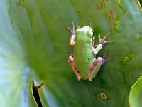 21日は岩根4丁目会場でラジオ体操を行い、帰宅して朝食前に蔓草の除去や水鉢への給水を行っていたらカエルが気持ちよさそうだった。