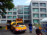 外では東日本高速道路アクアライン管理事務所のパトロール隊が車両の説明をしているので話を聞きながら38年前に私が西宮北管理事務所に居た頃との車両や資材の差、規制方法などの変化を色々と教わる。娘も熱心に聞いていたが、一旦帰宅して昼食を摂る。