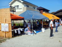 23日は江川会場でラジオ体操を行い、朝食後に風呂掃除をしてから着替えて江川集会所に行き10時からミニ縁日の設営作業を行う。