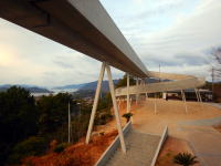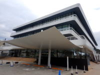尾道では議会応接室で岡総務課長より説明を受ける。平成の大合併で御調町、向島町、因島市、瀬戸田町を吸収し人口は約9万人から14万人を超えるまで増加したが人口減少が止まず財政も極めて厳しい状況に在る中で市役所の更新事業が進められた。旧庁舎に隣接していた公会堂を解体して庁舎を建設し移転後に旧庁舎を解体して駐車場とする計画で他市で視察した日建設計のデザインが気に入りプロポーザルに参加してもらい設計者に決めたということである。日建設計は造船の技術を活かして外壁を曲線の鉄板で覆い構造はしまなみ海道をイメージするトラス構造としたので斜材や海側にせり出す斜面の多い設計が特色である。市民のための建物を造り市役所が間借りするというコンセプトで市民が集まる空間を目指し、カフェや多目的スペース、護岸デッキや屋上展望広場などを設け閉鎖区画を分けることで夜間も市民に開放している。しかし市民からは立派なものを作るより安くあげろという意見が多く聞かれているようだ。満足している人は意見を言わないので、木更津市で駅前庁舎を建設し市民プラザの整備をしても同様の意見は多いだろう。