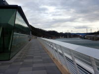 議会応接室での座学の後に幾つかの空間を見学させていただいたが海に近くてクルーズ船に乗っているような錯覚をするデザインは素晴らしく外壁の鉄板は地元造船所で調達するため市の職員が直接訪ね歩いたと聞くと大手の設計会社とゼネコンに任せただけでない心を込めた建築なんだと改めて感心させていただいた。