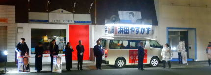 袖ケ浦市議団から引き継ぐ木更津市議団も多数集まり選挙戦の終盤に向かっていく。次の会場は17時に本郷の新御堂寺駐車場で、私が司会を務め重城市議が応援弁士という恒例のパターンである。次の会場の桜井に遅れないように20分ほどで演説会を終えて出発する遊説車を見送り、選挙活動から離れて巌根駅近くの居酒屋に行き岩根小学校PTA役員で11月に実施したフェスタの慰労会を兼ねながら次年度役員体制などの打合せを行う。現会長と元会長と私の3人で二次会に行ってしまい深夜に帰宅したが、雪は弱くなり安堵して就寝した。