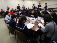 | 「合同生徒会」は市内公立中学校12校の生徒会長が各学校の生徒会活動についての情報交換を行ったり共通の課題や社会的諸問題に着目して協議したりする会議で、豊かな創造力を育てるとともに次世代のリーダーを育成し若者のまちづくりへの参画を推進するため令和5年3月に発足し、今回が4期目となる。市議会としては主権者教育の一環として議会改革特別委員会が中心となり共同事業として昨年度から開始したものである。議場を見学してもらい生徒からの質問を議員が答え議員をアドバイザーに加えたテーブルディスカッションを行い教育長を交えた全体会でまとめるという一連の流れを3時間で行うという内容の深いもので、今回は富津市の平野議長を含む3人の市議も傍聴に来ていた。質問は事前通告で議員の答弁は自ら調べて答えているので若干の間違えも気づいてしまったが、災害対策に対する答弁で助けられる側から助ける側に回るようにしてくださいという鶴岡議員の答弁は流石だと思った。最後に議場で記念写真を撮影して終了となるので、福祉会館に移動して10時から開催されている福祉まつりの見学に行きついでに昼食を購入する。 |