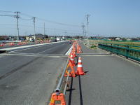 ![]() 平成25年06月03日撮影 車線の変更準備が行われている |